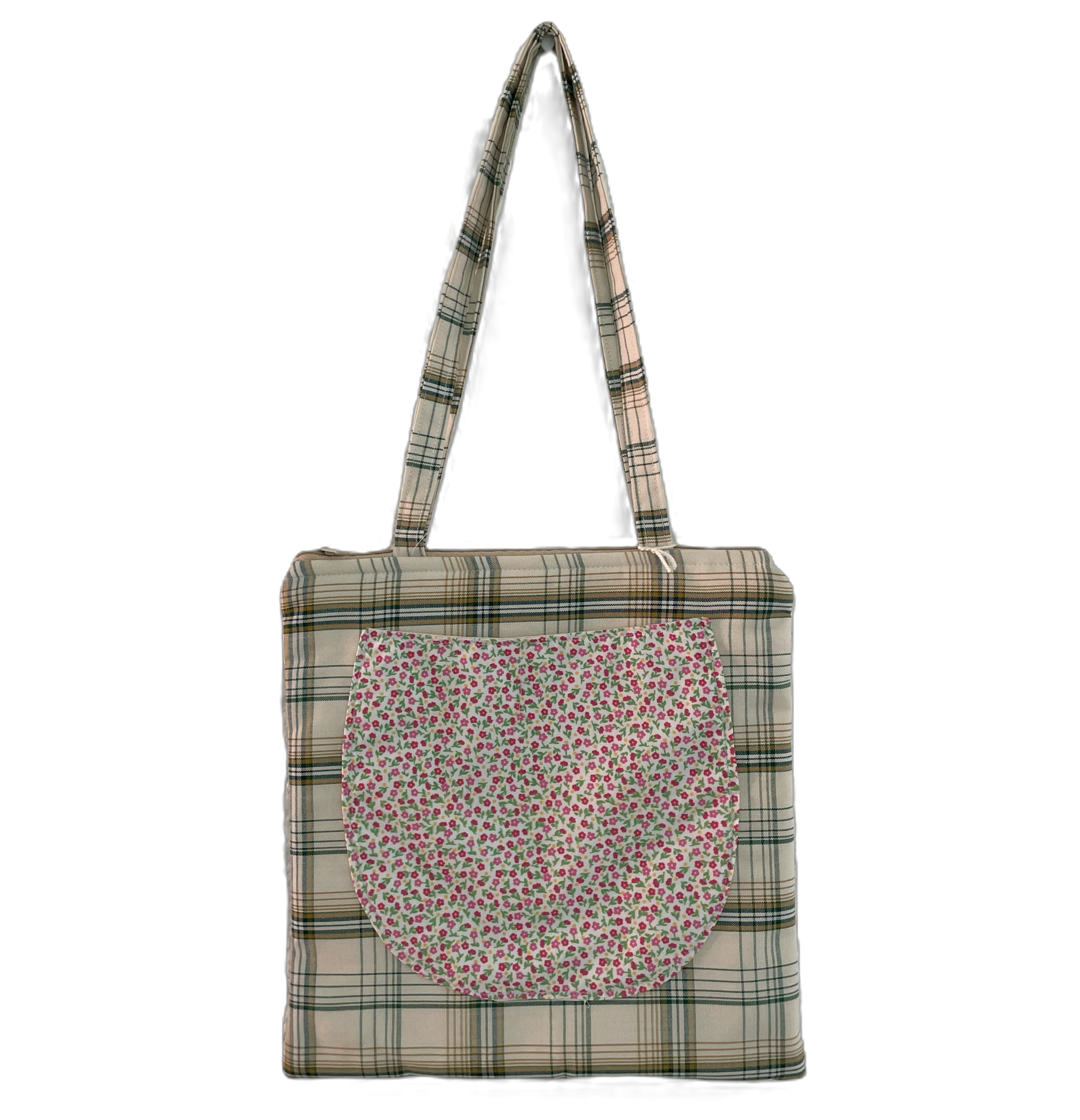 Hermosa bolsa hecha de tela. Tiene una bolsa frontal.