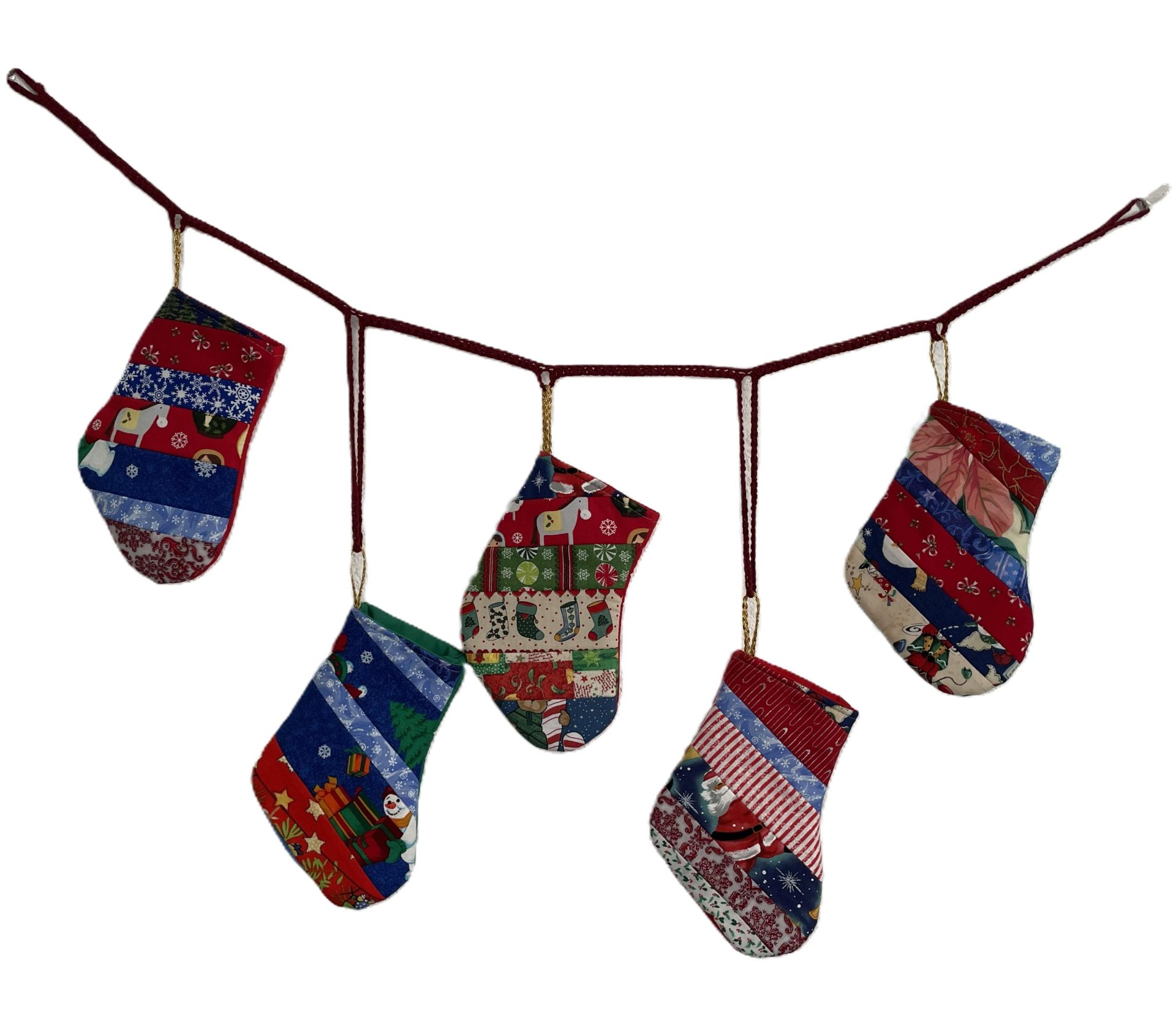 Hermoso colgante navideño hecho con 5 botitas de tela hechas a mano.
