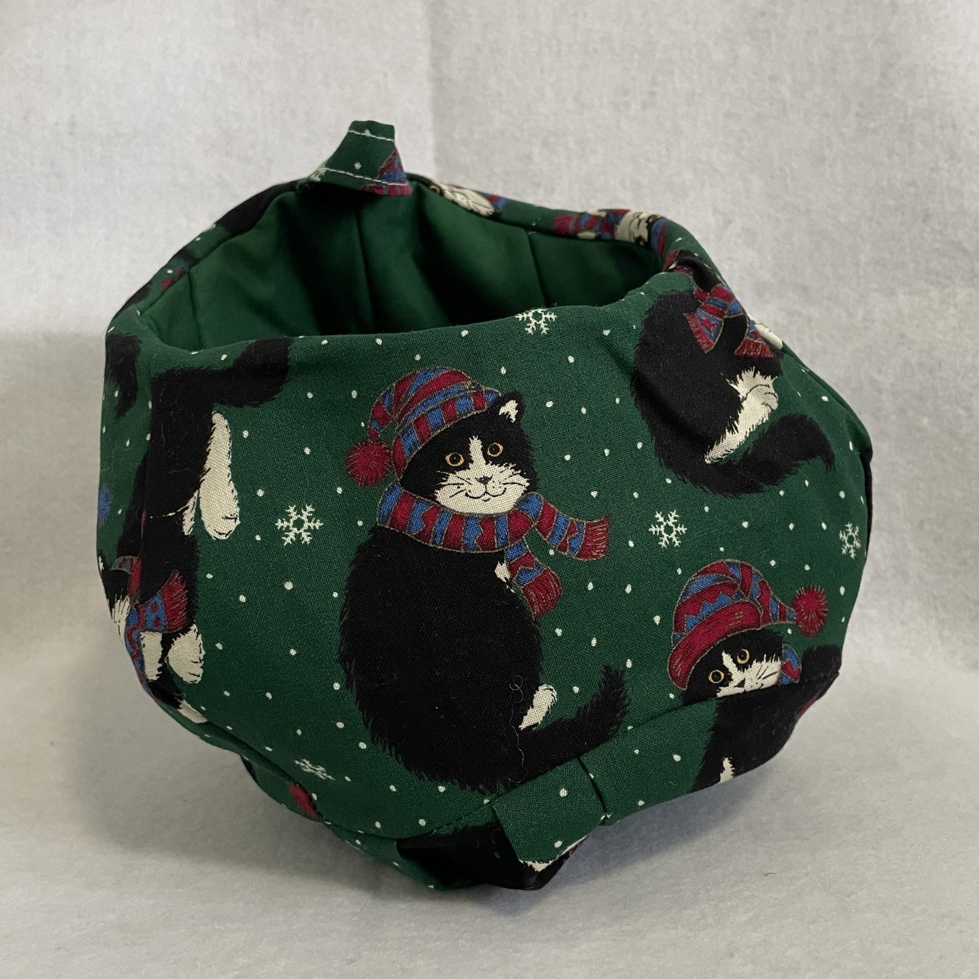 Hermosa canasta de tela hecha a mano con telas navideñas.