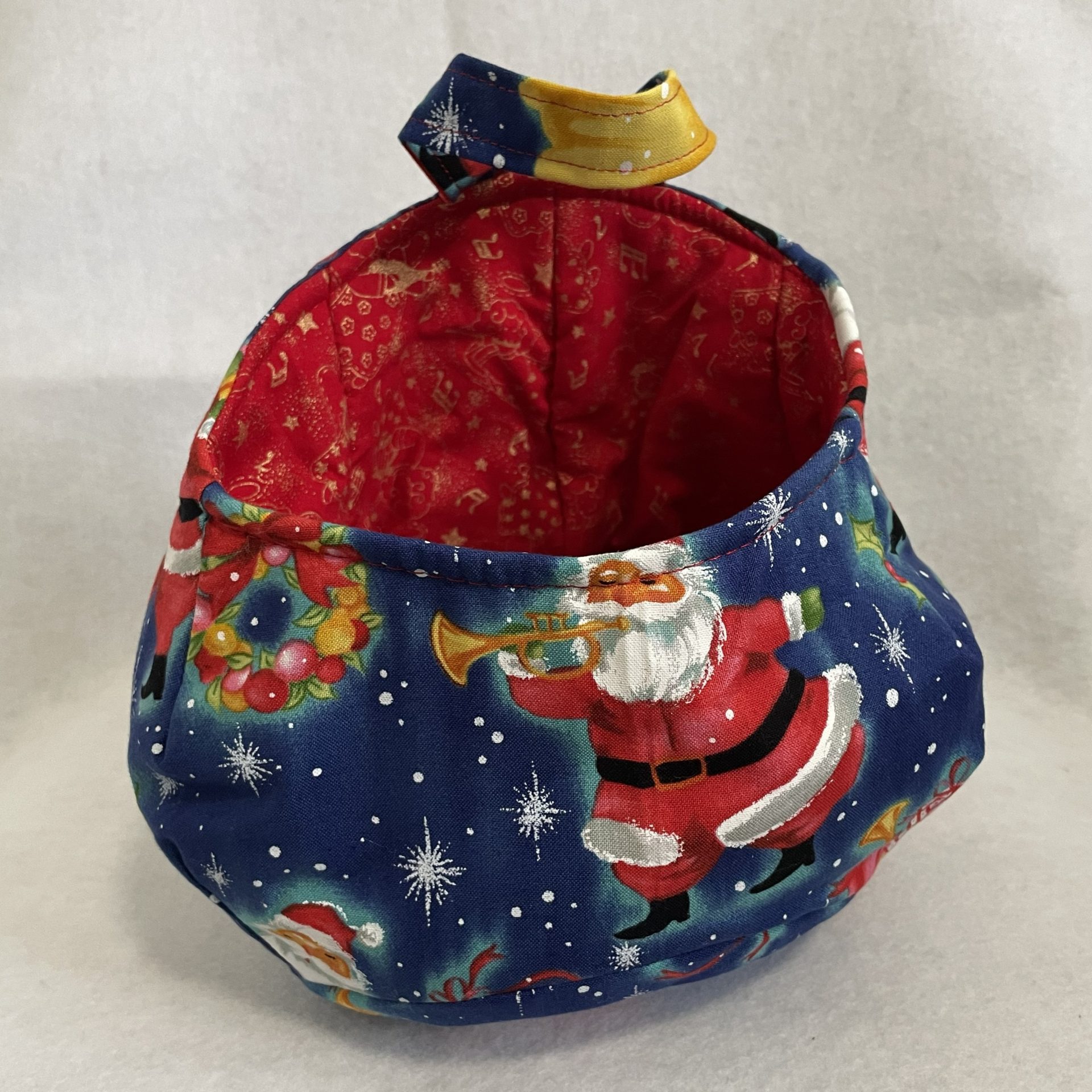 Hermosa canasta de tela hecha a mano con telas navideñas.