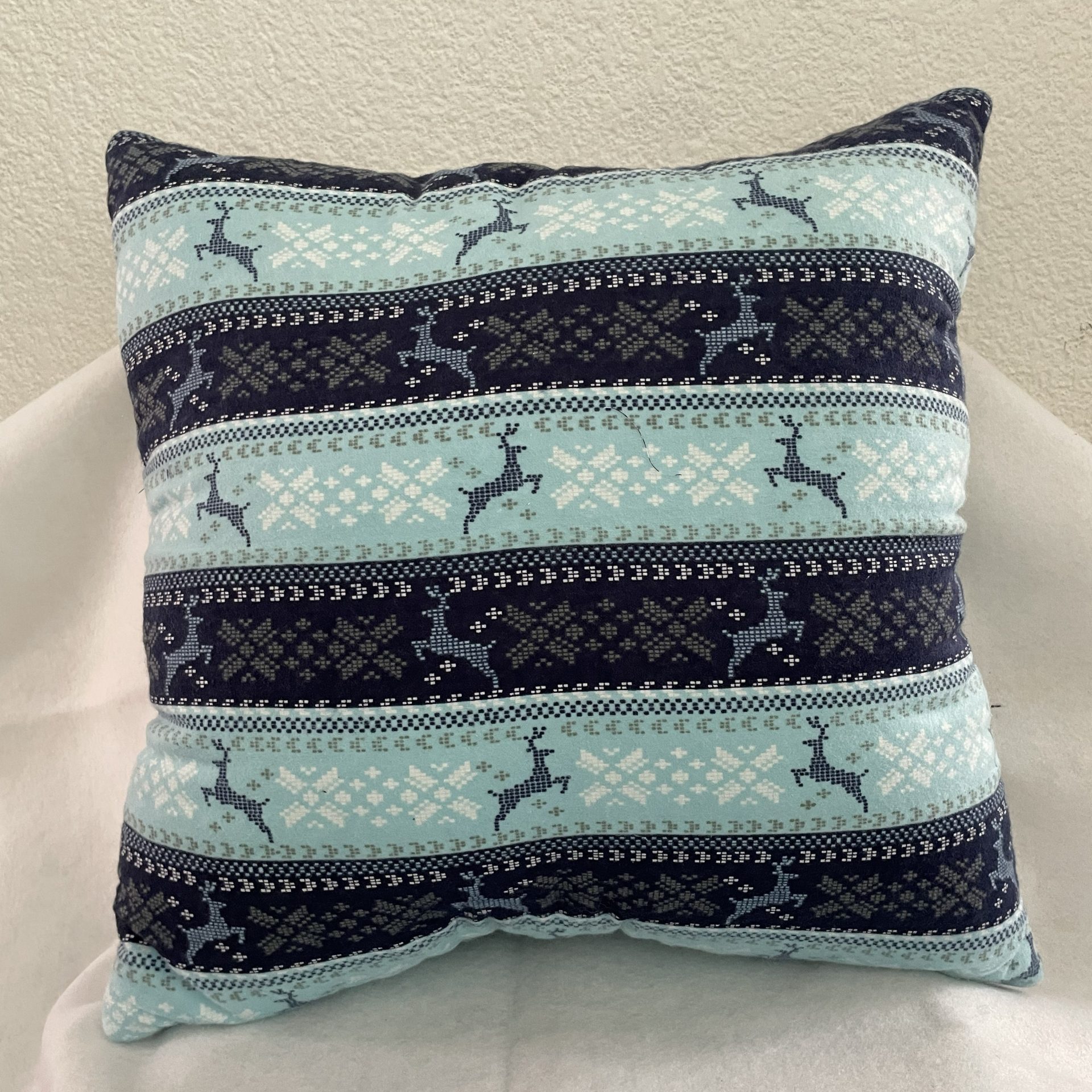 Hermoso cojín hecho a mano con tela navideña de franela.