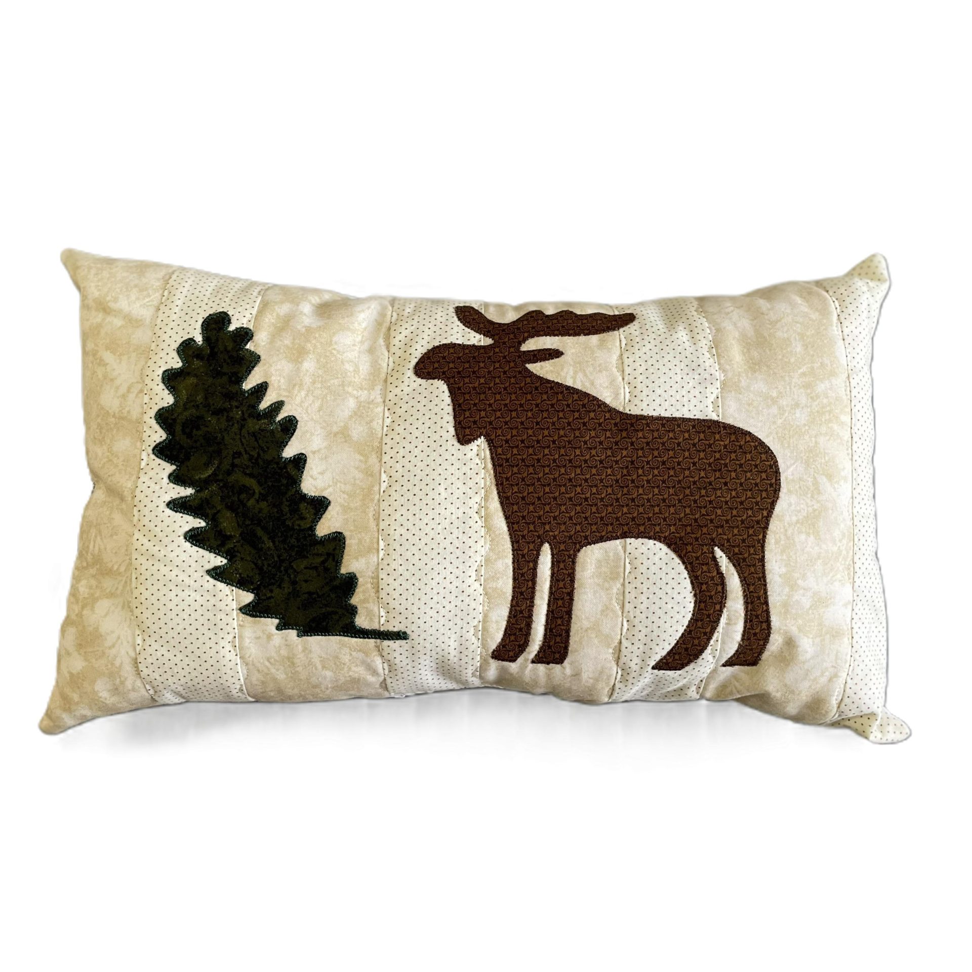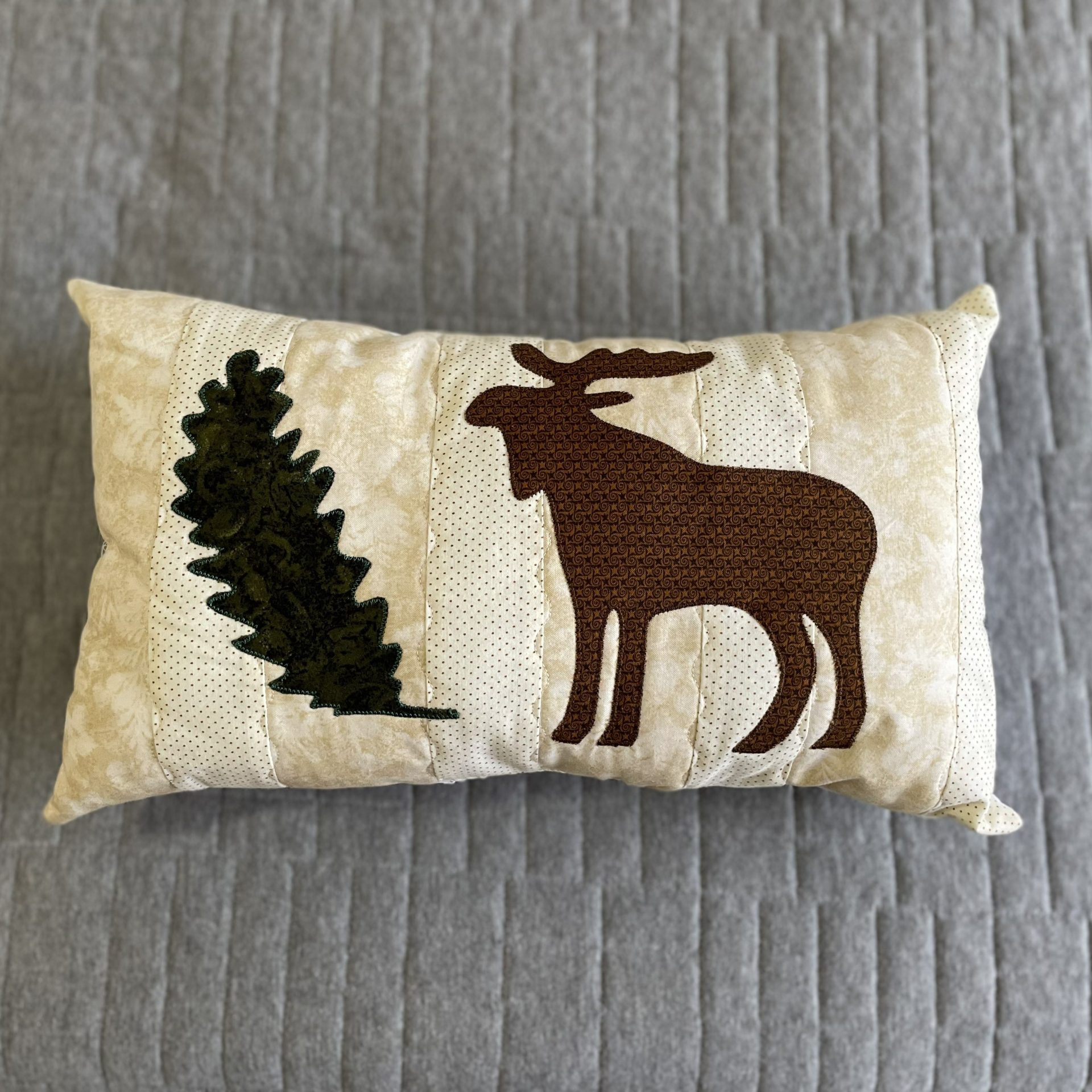 Hermoso cojín hecho a mano con parches de telas navideñas.