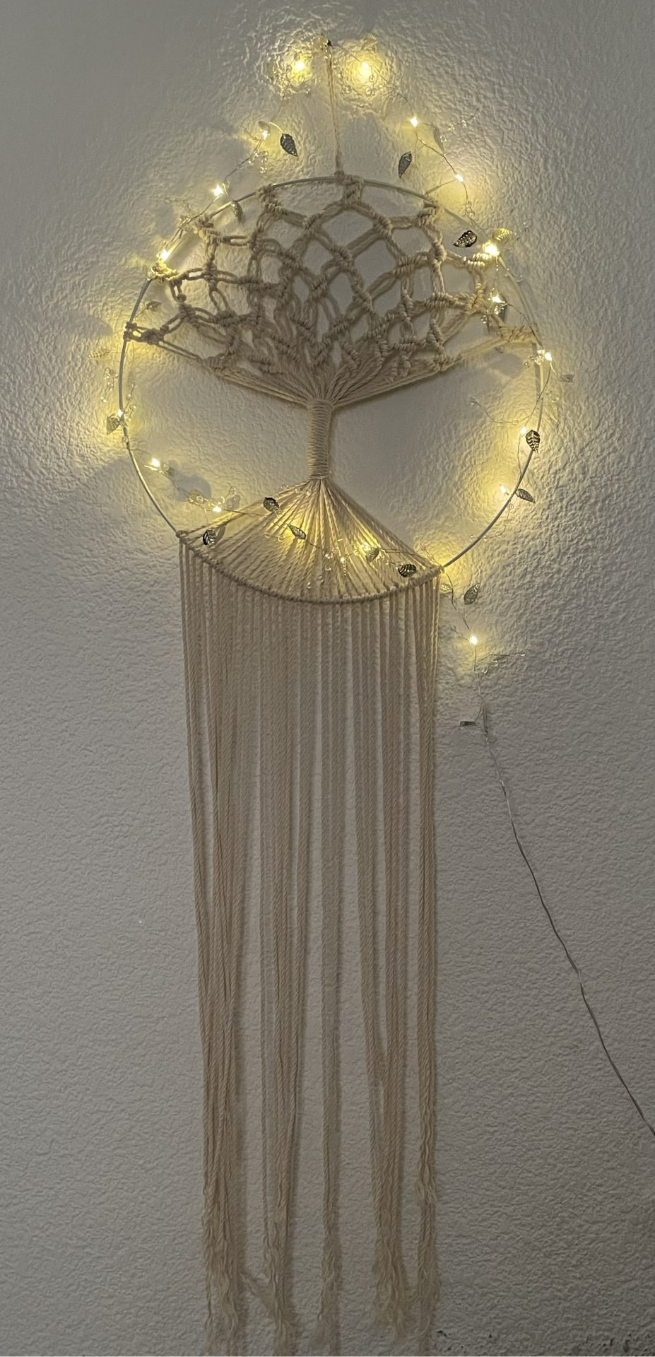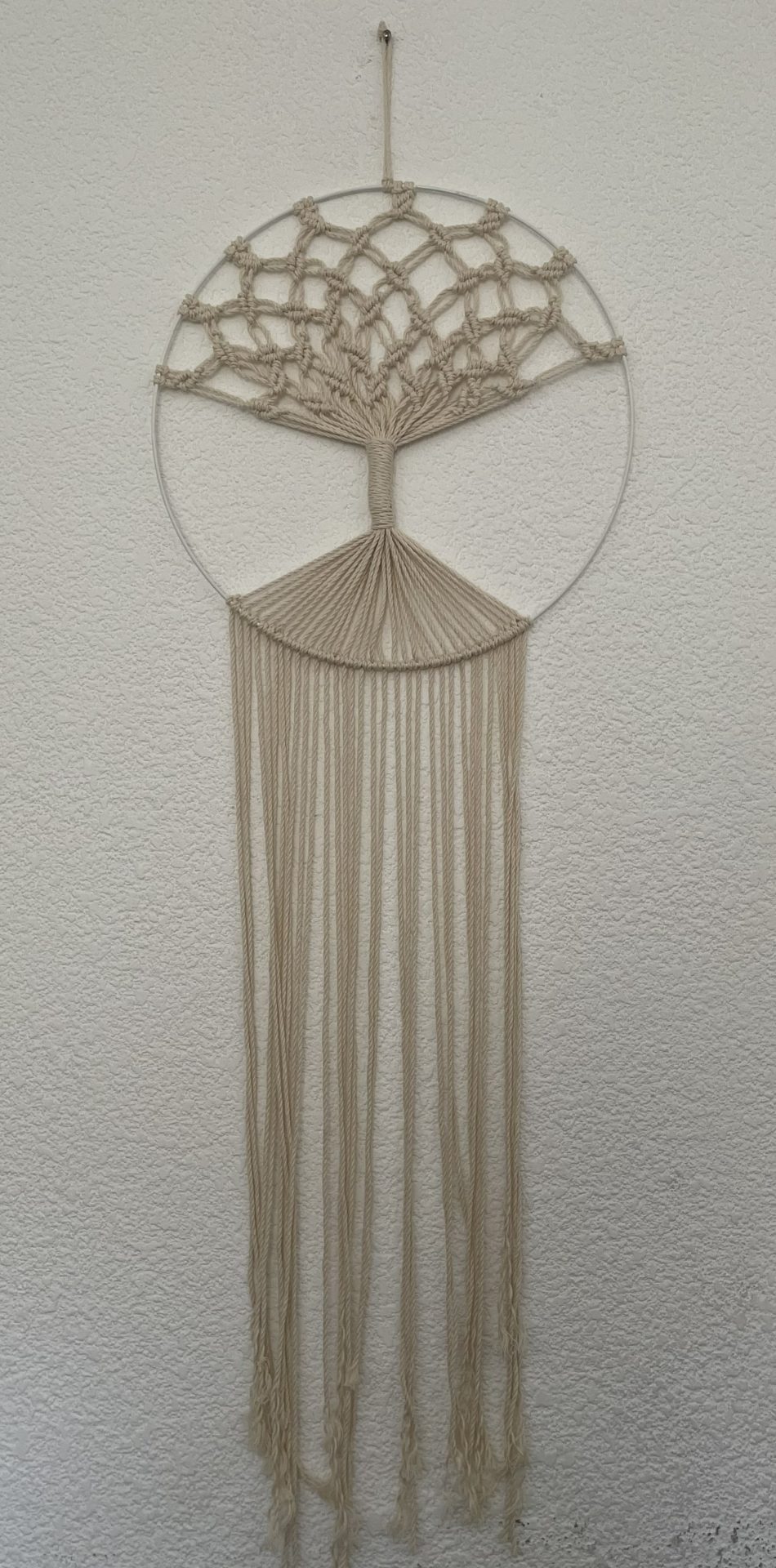 Hermoso colgante del árbol de la vida tejido con la técnica de macramé.