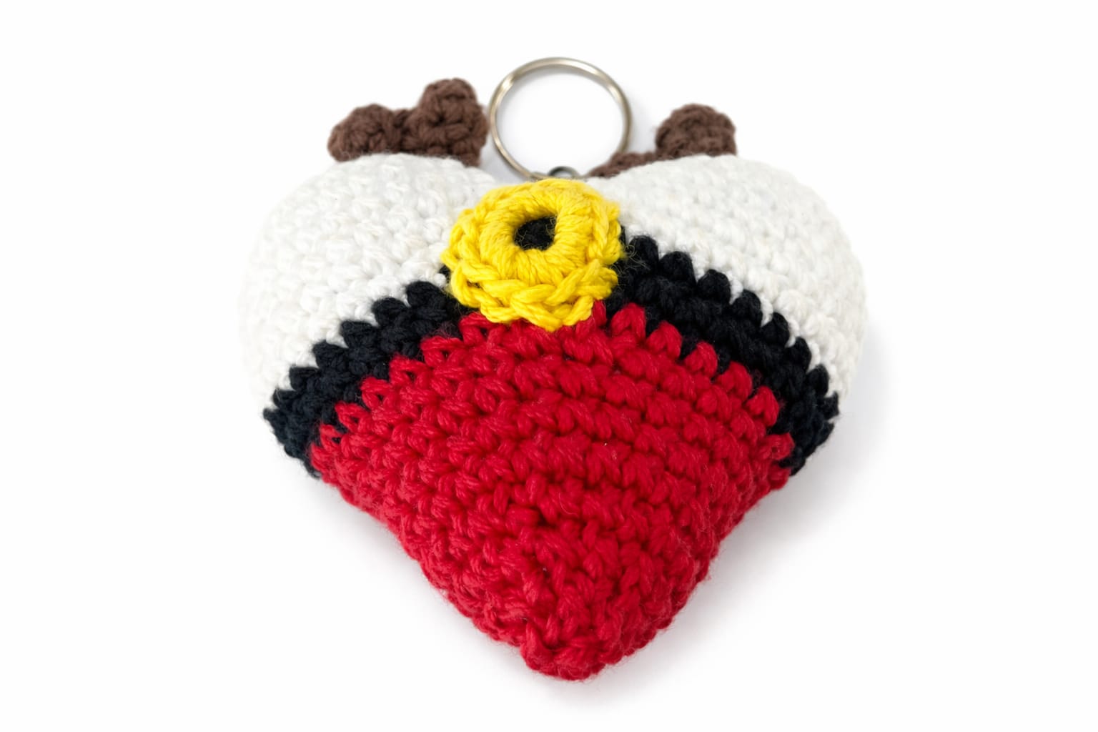 Hermoso llavero de corazón navideño tejido a mano con estambre 100% algodón.