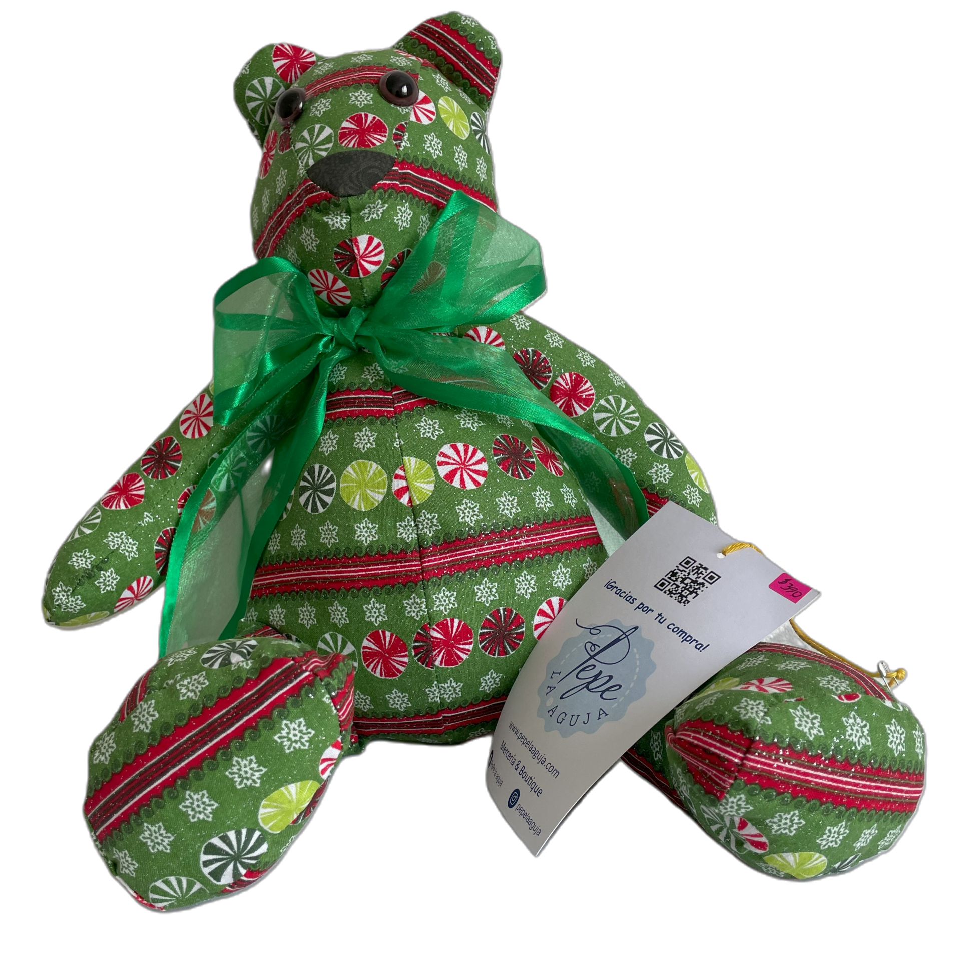 Hermoso oso hecho a mano con tela navideña.