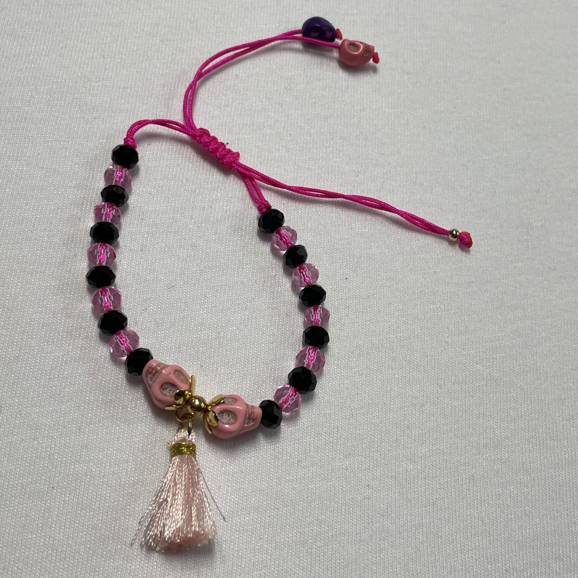 Hermosa pulsera ajustable de cristales con figuras de calavera.